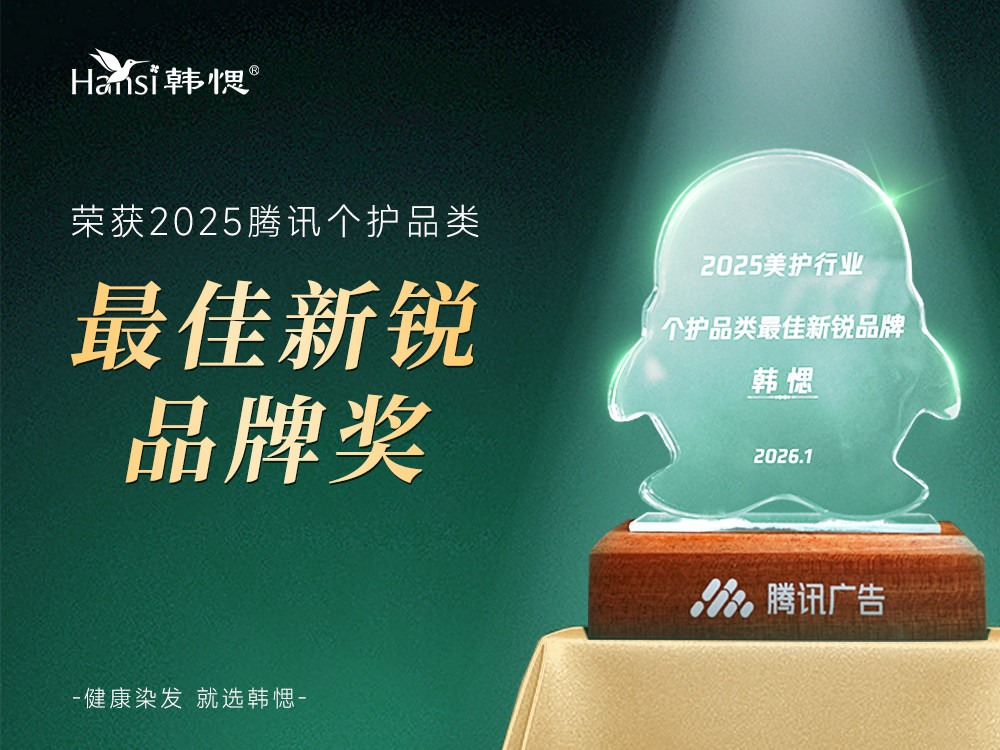 2026年1月,国货健康染发品牌韩愢凭借在腾讯视频号生态的卓越运营与增长表现,荣膺腾讯广告“2025年个护类最佳新锐品牌奖”。 -