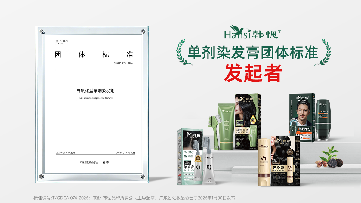 近日,由国货品牌韩愢牵头起草的《自氧化型单剂染发剂》团体标准(编号T/GDCA 074—2026)正式发布,该标准由韩愢品牌主导编写,经由广东省化妆品学会、广东工业大学等权威部门审核发布。 -